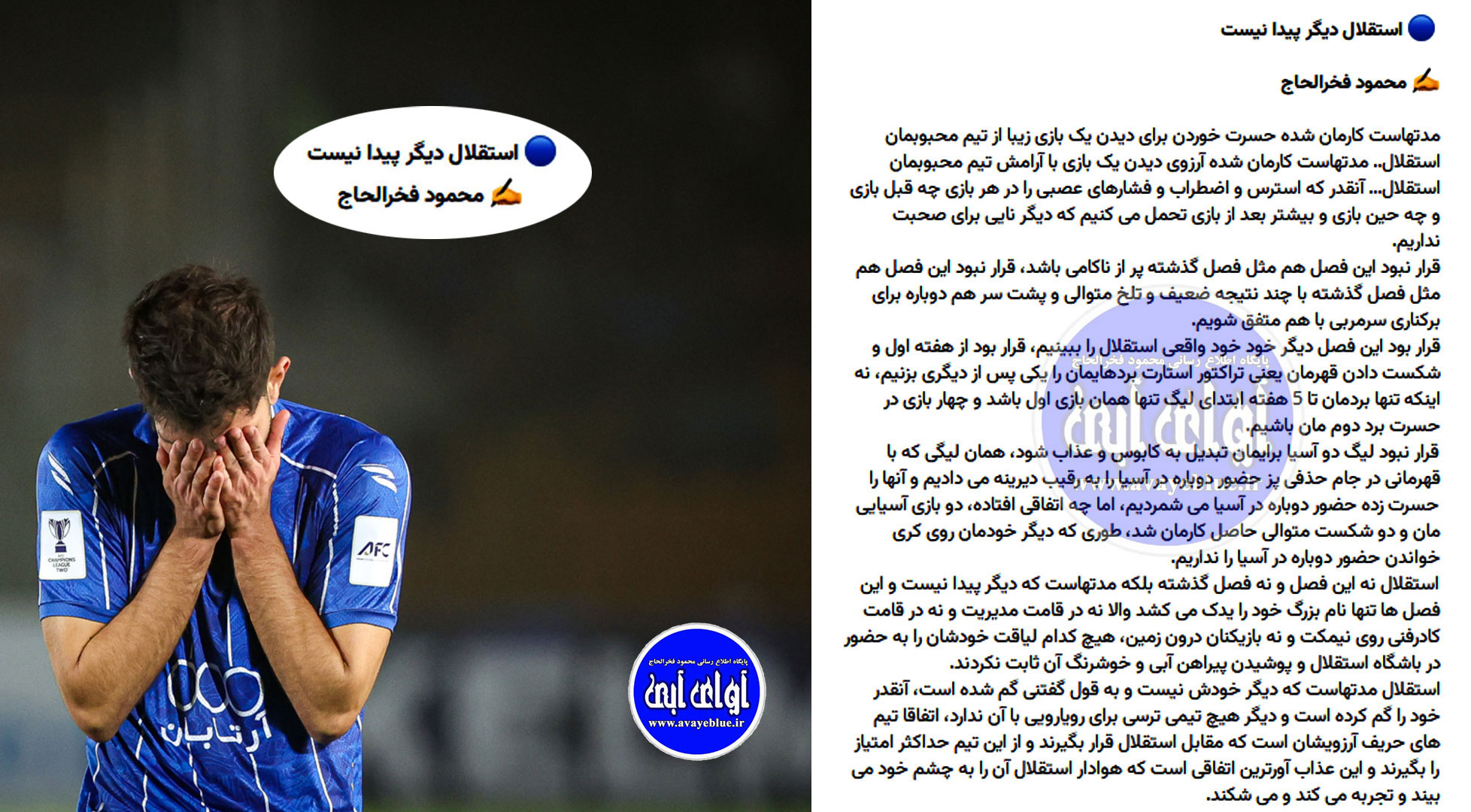 استقلال نه این فصل و نه فصل گذشته بلکه مدتهاست که دیگر پیدا نیست و این فصل ها تنها نام بزرگ خود را یدک می کشد والا نه در قامت مدیریت و نه در قامت کادرفنی روی نیمکت و نه بازیکنان درون زمین، هیچ کدام لیاقت خودشان را به حضور در باشگاه استقلال و پوشیدن پیراهن آبی و خوشرنگ آن ثابت نکردند.