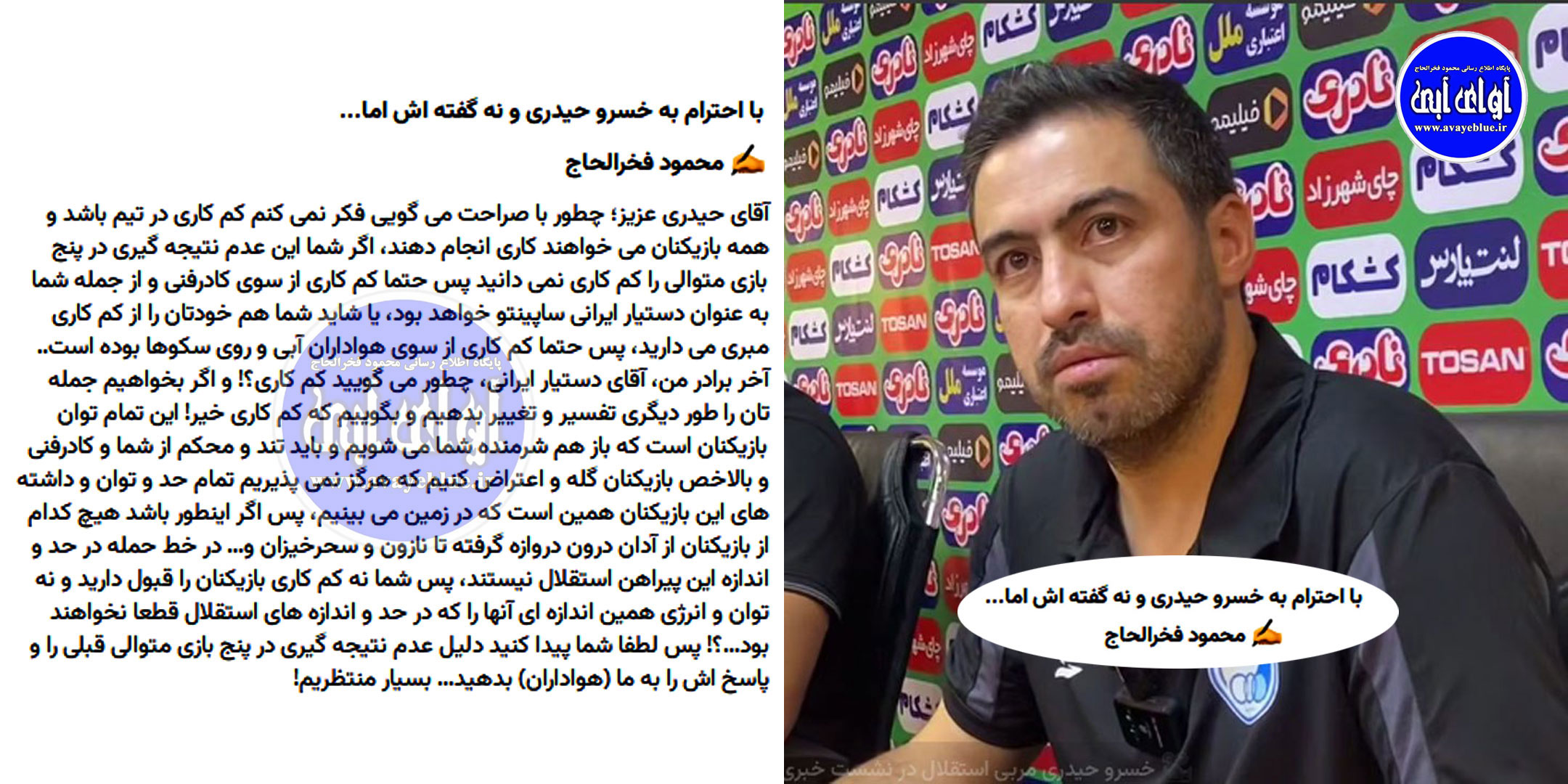 🔵 با احترام به خسرو حیدری و نه گفته اش اما...