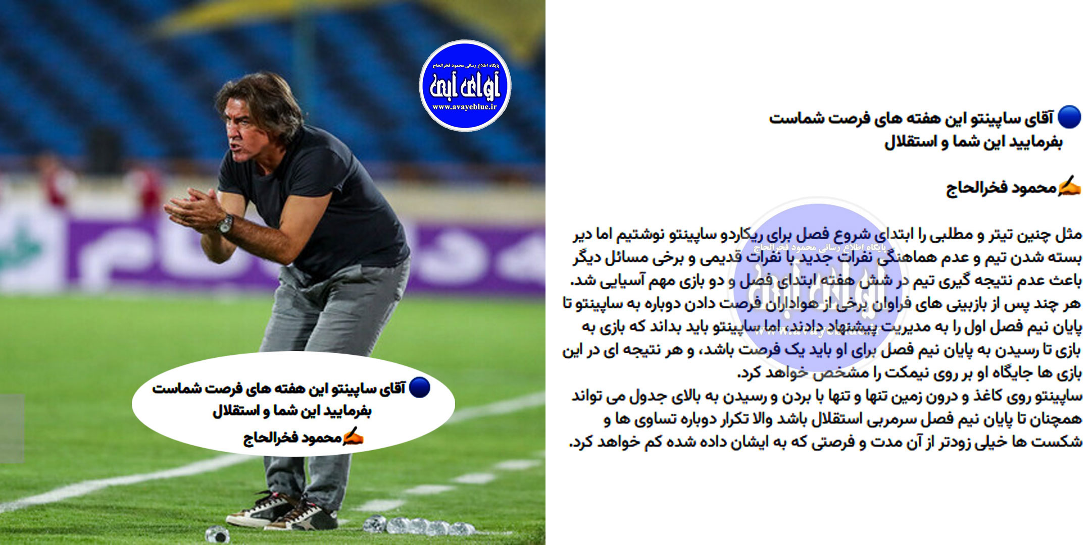 🔵 آقای ساپینتو این هفته های فرصت شماست بفرمایید این شما و استقلال