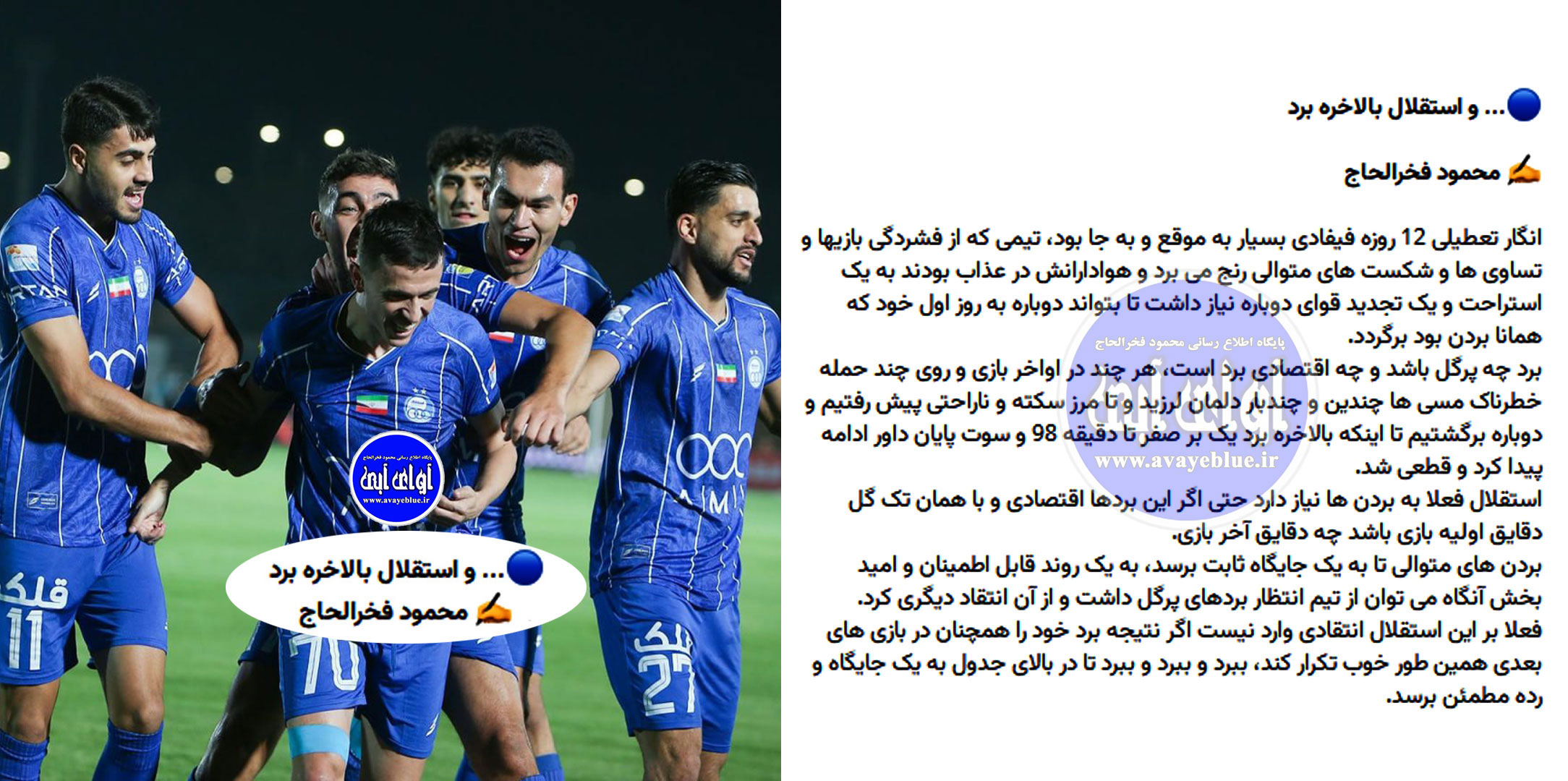 فعلا بر این استقلال انتقادی وارد نیست اگر نتیجه برد خود را همچنان در بازی های بعدی همین طور خوب تکرار کند، ببرد و ببرد و ببرد تا در بالای جدول به یک جایگاه و رده مطمئن برسد.