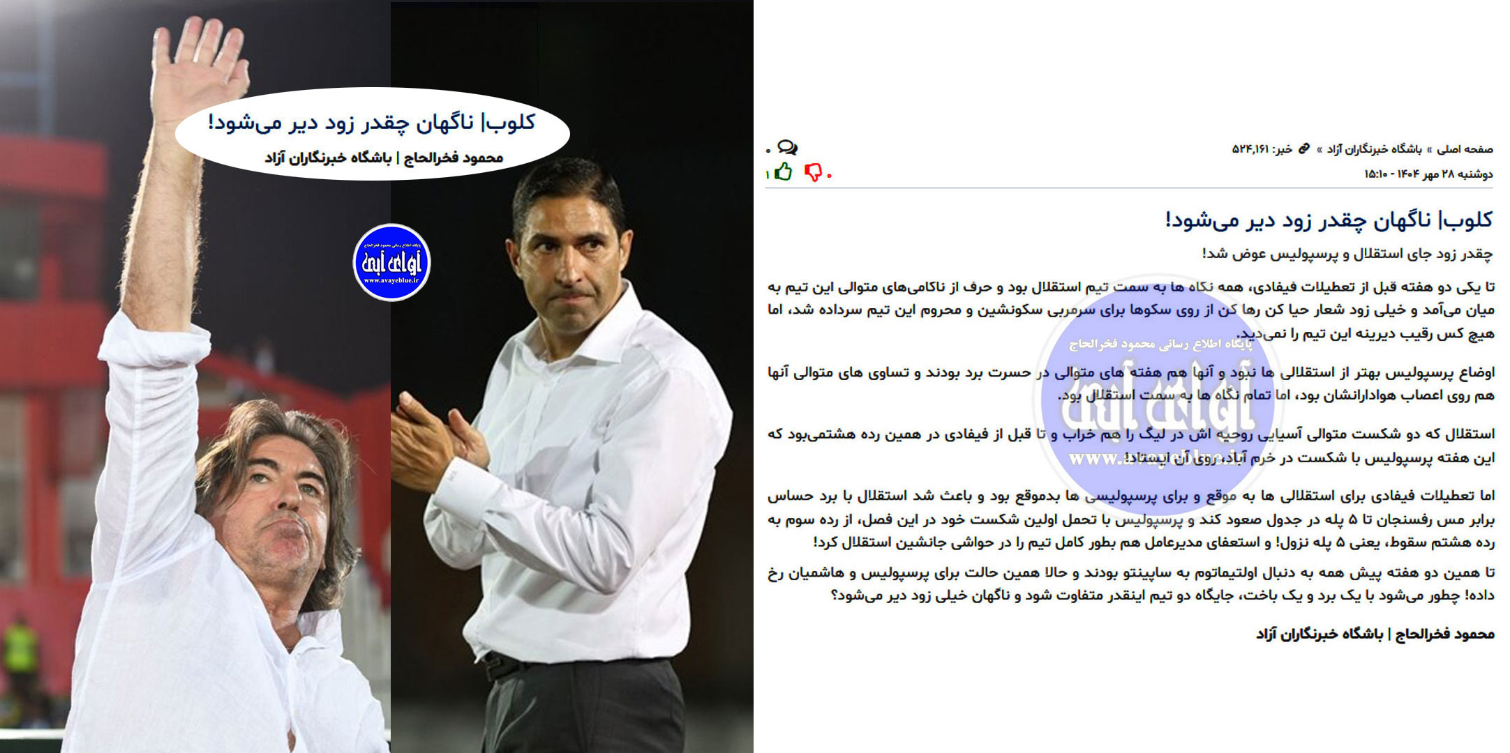 درست است از برد شیرین برابر مس رفسنجان به وجد آمده ایم آن هم پس از هشت بازی حسرت برد داشتن، با شکست دیگر رقیبان و تثبیت رده سوم برای آبی پوشان کم کم خط امنیتی در راه ترسیم شدن است، اما نباید در باد یک برد آن هم پس از هشت هفته ناکامی بیش از یک روز یا دو روز بخوابیم، آن هم برای استقلالی که هنوز راه طول و درازی برای رسیدن به هدف که همانا قهرمانی است در پیش دارد.