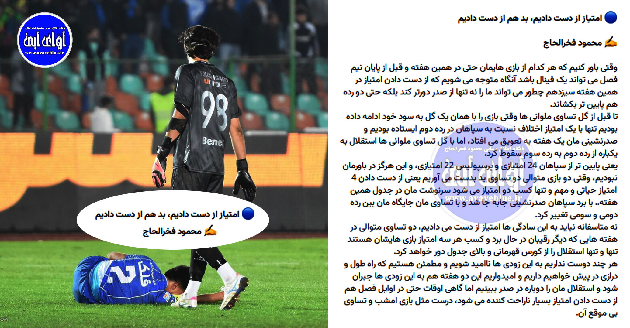 🔵 امتیاز از دست دادیم، بد هم از دست دادیم