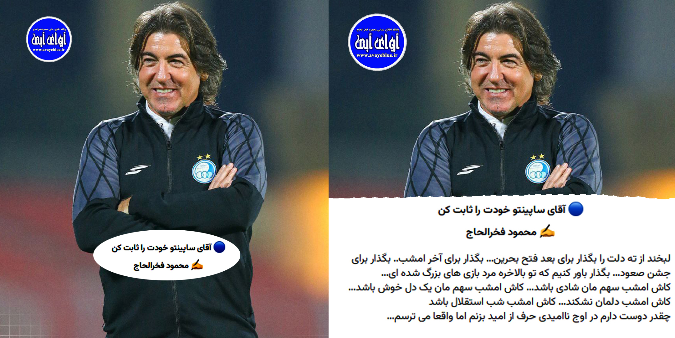 لبخند از ته دلت را بگذار برای بعد فتح بحرین... بگذار برای آخر امشب.. بگذار برای جشن صعود... بگذار باور کنیم که تو بالاخره مرد بازی های بزرگ شده ای...