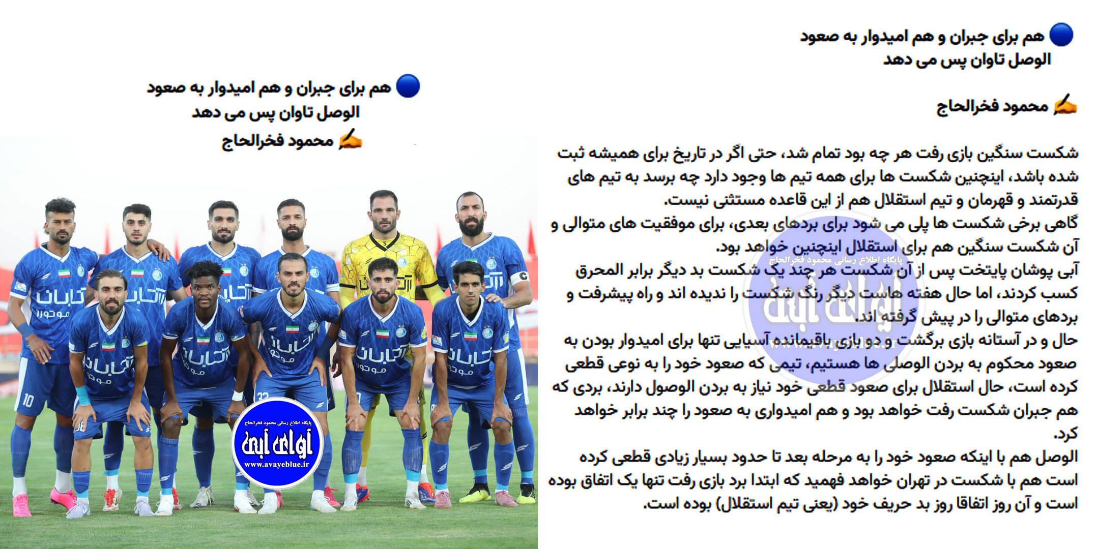 گاهی برخی شکست ها پلی می شود برای بردهای بعدی، برای موفقیت های متوالی و آن شکست سنگین هم برای استقلال اینچنین خواهد بود.