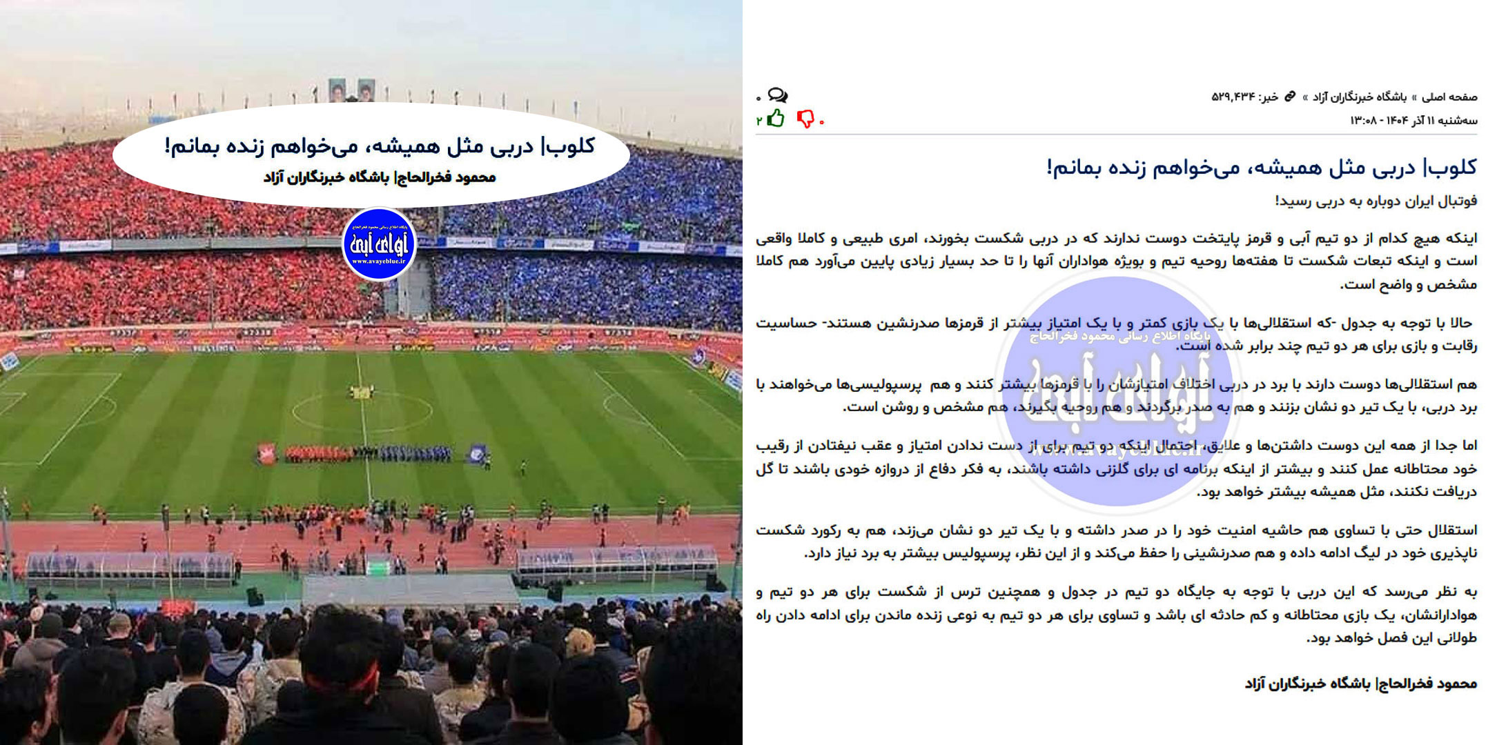 🔵 دربی مثل همیشه، میخواهم زنده بمانم!