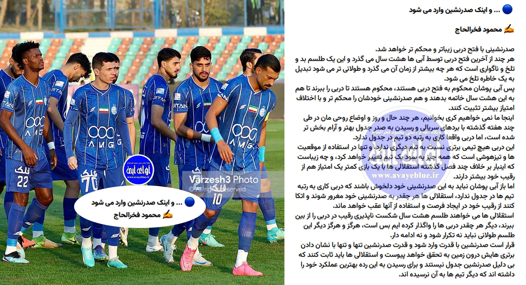 پس آبی پوشان محکوم به فتح دربی هستند، محکوم هستند تا دربی را ببرند تا هم به این هشت سال خاتمه بدهند و هم صدرنشینی خودشان را محکم تر و با اختلاف امتیاز بیشتر تثبیت کنند.
